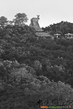 《鹿回頭》雕塑矗立在鹿回頭公園五嶺的最高峰,高12米、長(zhǎng)9米,寬4.9米,獵手和鹿女依偎在鹿的兩側(cè),凝結(jié)成三亞別稱(chēng)“鹿城”。
