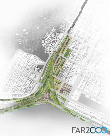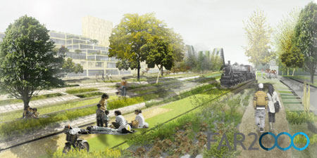 在Cie公司的提案中,新的多功能城市樓群、商業空間、改造成藝術家工作室和展館的原工業建筑、火車場、火車線和車站建筑等交織在一起,并新建一座直線型的公園。公園內的核心部分是一座歷史博物館,講述了該地區的工業歷史。這樣一來,歷史保護和復興以及環境可持續性這兩個目標都能實現。