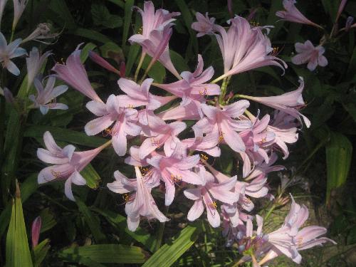 目前正在開花的是都是彼岸花的姐妹,有忽地笑、中國石蒜、長筒石蒜、換錦花、鹿蔥等多種石蒜類花卉,有數百株,最集中的位于盆景園東側道路旁的水杉林下,其它園區也有零星分布。花期可持續到9月初。紅、粉、藍、黃、白等各色嬌艷的花朵正在爭奇斗艷,著實讓人驚艷。忽地笑花鮮黃至橘黃色;中國石蒜花明黃色;長筒石蒜花白色稍具紅紋;換錦花花淡玫紅,瓣端帶藍色;鹿蔥花粉紅色具蓮青色、水紅色暈,芳香。