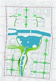 (3)最大化北湖和超高層綜合體的外部效應(yīng),創(chuàng)造良好的空間環(huán)境,促進相關(guān)產(chǎn)業(yè)的互動與整合,成為小清河及濟南市的一個標(biāo)志性綠色核心城區(qū)。