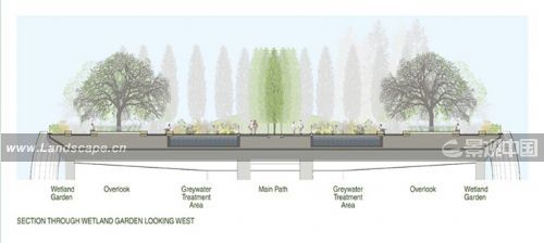 項目場地位于未來的公共汽車、輕軌和軌道終點站之上,設計中結合了水體改造、城市棲息地的可持續(xù)性原則。這個4英畝的公共公園將會為市民提供休閑娛樂和教育的體驗,同時會提高環(huán)境質量。