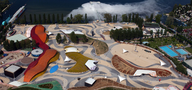 伊韋爾東萊班(Yverdon-les-Bains)的Arteplage藝術區是2002年瑞士國家博覽會的的四個舉辦地其中之一,west8所領導的設計團隊Extasia在眾多的國際競爭者中贏得了場館的設計權。'