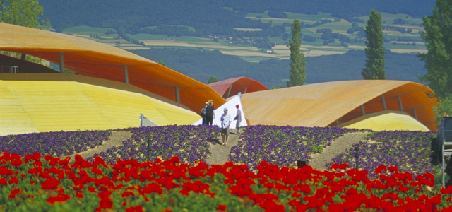 高達六米的人造沙丘狀小山是這次設計的主要元素,小山采用瑞士當地的木構技術堆砌,各種顏色鮮艷的鮮花被按照特定的圖形組合種植在上面,游人徜徉在這些小山之間,感受到的不僅的強烈的色彩給人帶來的視覺沖擊,更有濃烈的花香刺激你的嗅覺神經。
