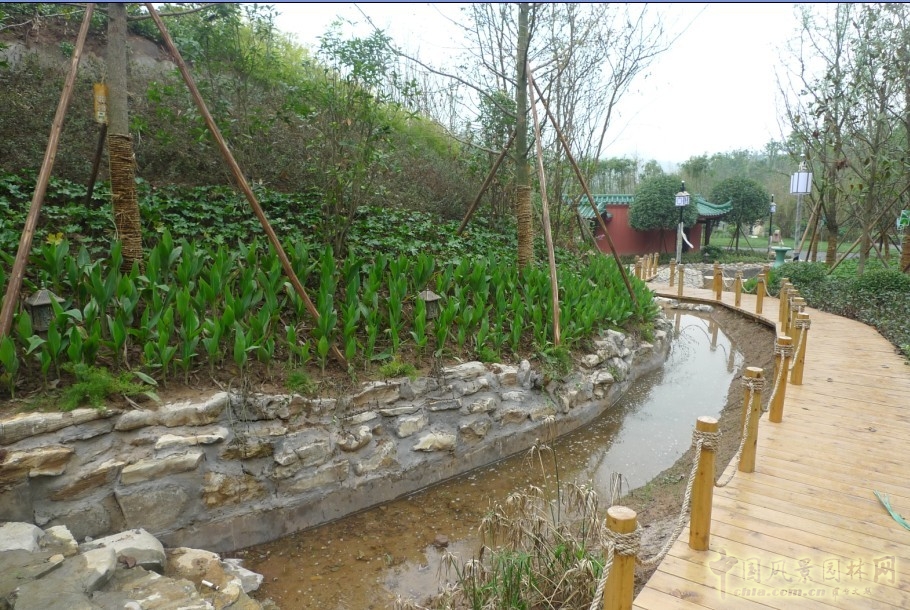 瀑布(提高水體曝氣量增加水體含氧量)、湖面(降低水流速度起到沉淀作用)、小溪(利用變化的河床和岸線提高水系自我交換能力)、濕地(利用濕地周邊的植物和微生物吸收水中微量元素凈化水體)、亂石跌水(提高水體曝氣量和分子活力)最終形成完善的水系循環(huán)系統(tǒng)。