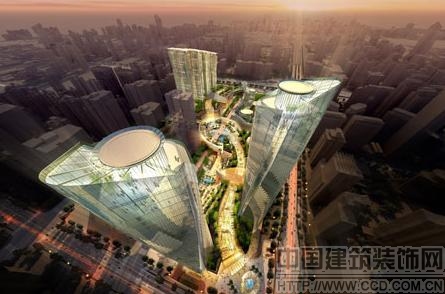 兩座拔地而起的大廈成為該地區(qū)入口的標(biāo)志,細(xì)長優(yōu)雅的樓身和超清晰的玻璃系統(tǒng)將內(nèi)外部公共空間聯(lián)系起來,并且在現(xiàn)代和歷史性的城市背景中以旋轉(zhuǎn)的姿態(tài)向上。從屋頂觀景平臺可以俯瞰下面的現(xiàn)代城市和附近的歷史區(qū)域。這種花園城市般的設(shè)置反映出中國不斷發(fā)展的現(xiàn)代城市景觀。