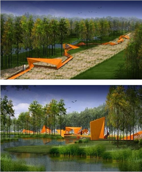 設(shè)計(jì)作品“河北省遷安市三里河兩岸環(huán)境整治建設(shè)項(xiàng)目”位列2009年中國(guó)人居環(huán)境范例獎(jiǎng)名單中。該項(xiàng)目位于河北省遷安市河?xùn)|區(qū)三里河沿岸,項(xiàng)目主要為河道改造及沿岸景觀設(shè)計(jì)。河道部分干枯,較多區(qū)域?yàn)槲廴尽1猩鷳B(tài)與人文的設(shè)計(jì)理念,方案用“三明治”式的帶狀綠地結(jié)構(gòu),在一個(gè)污染的城區(qū)河道上,恢復(fù)了一個(gè)生態(tài)的綠色基底,在此基底上形成一條獨(dú)具特色的廊道。合解決了河道清污、生態(tài)重建、民眾休閑、遺產(chǎn)利用、文化體現(xiàn)等問題。