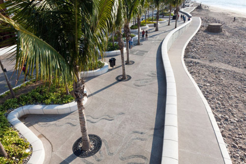 墨西哥巴亞爾塔港海濱景觀項目是由West8,TramaArquitectos和Estudio3.14三家景觀事務所合作為當地景觀工程設計的一個標志性的海濱景觀,被本地人稱為濱海大道工程。該項工程在經過2011年夏季施工之后將于感恩節之前徹底完成,是標志巴亞爾塔港當地城市文化復興的重要項目。作為墨西哥旅游的重要景點之一,巴亞爾塔港將被改造成為一個富有現代活力且方便行人活動的大型公共空間。