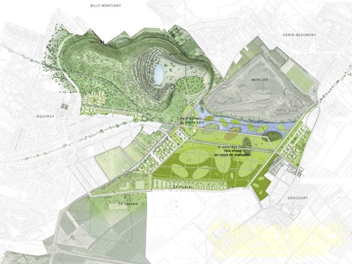 設計方案為:在居民區的南邊一個商業區周圍,將經濟(免稅區)、居住(europan2005)和游憩區(藝術公園中精美的水平面)緊密結合起來。
