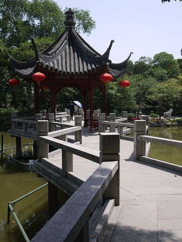 九曲橋攔腰浮于湖面,湖心亭猶如一顆寶石嵌在橋中,與東面柳蔭橋遙遙相望,湖南有曲香廊,又名五曲長廊,因沿湖岸犬牙交錯,就曲設(shè)廊,廊底有亭,曲徑通幽。窮五曲香廊,沿左岸盡頭,便是樓高廳閣的茗軒。湖面四周,亭、堂、閣、軒高低錯落,山水相連,視野開闊,以湖為主,給人以天高湖闊之感, 讓人也有種落入仙境的感覺。