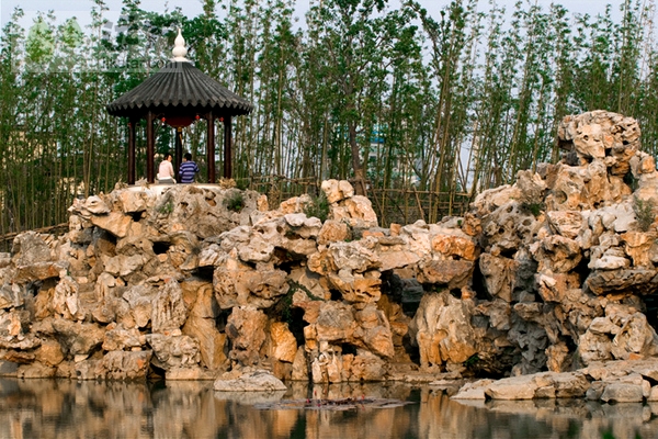 以水為中心,環(huán)湖漫步,分別可看到白鶴亭、不系舟、浮筠閣、竹枝山和缺角亭,是猗園老區(qū)之一。