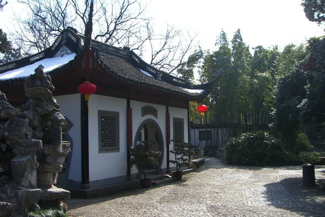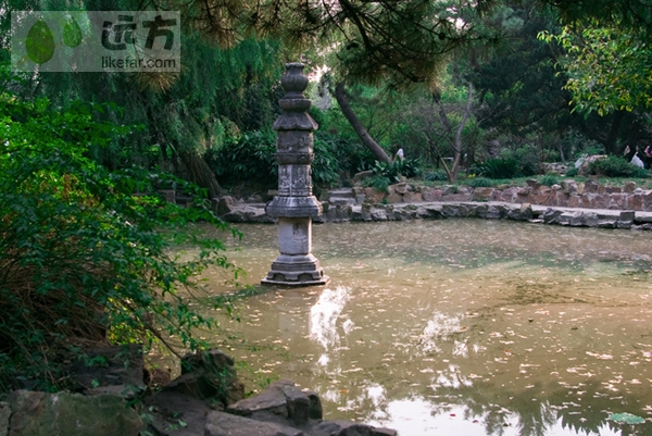 戲鵝池得名,是因為池內(nèi)有白鵝成群,嬉水游弋引頸高鳴。立岸觀賞,綠水白鵝,靜中有動,情趣非凡。戲鵝池西邊的白鶴亭是為了紀念"白鶴南翔"而建,是園中最古老名勝建筑之一。