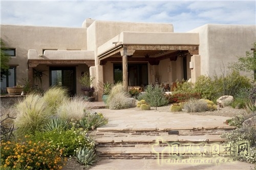 中國風景園林網訊 在各地都追求綠化和景觀的時下,世界上還是有很多缺水的地區也在追求一種景觀,一種可以長久維持的美麗綠色景觀。干旱地區成功景觀的關鍵是技能和規劃。要求設計一個具生動性、功能性,且低水需、低修剪度的花園,需要考慮一些特殊的植物和硬景元素。