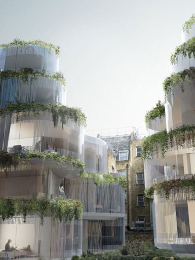 倫敦的上流住宅區Mayfair,一座混合用途的垂直綠化建筑目前處在預先規劃階段。這座垂直綠化建筑位于希爾頓飯店和“In and Out”俱樂部之間,只有17%的立面臨街。為了得到較高的租金,這座建筑必須設計吸引人的街道或花園景致。但在Mayfair保護區的核心位置,要做到這一點很困難,需要極具想象力的解決方案。