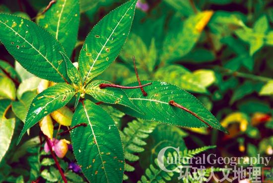 螞蟥這東西,別看就火柴棍那么長,卻能在幾秒鐘之內順著登山杖翻幾個跟頭就爬到你的手上,速度遠比你想象的要快。而且,它的兩端都有吸盤,一端吸住植物葉子上,一端懸在空中,只要從它身邊經過,它就跳到你身上、脖子里,防不勝防。它柔軟的身體讓你無從下手,捏住一端,它又用另一端吸住,你還不敢用力撕扯,如果扯斷,留在皮膚內的吸盤會引發炎癥。最慘的一位隊友身上鉆進了幾十條螞蟥,大家好不容易幫他揪下來,條條都吃飽了血,撐得就像大板栗,用礦泉水瓶裝了半瓶,讓人毛骨悚然。