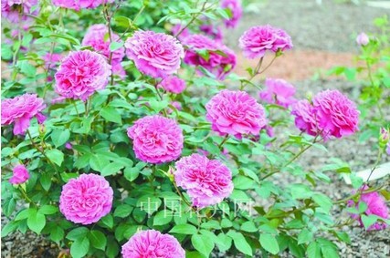 艾倫蒂施馬奇:開花似牡丹,花瓣顏色是深粉色,擁有好聞、柔和而溫暖的古典月季香味。這是一個特別健壯的品種,適合花境的背景。