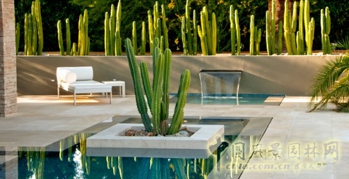 水景與仙人掌搭配,能夠倒影山脈,能夠掩蓋馬路的喧囂