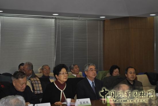 中國風景園林學會副理事長兼秘書長陳重(前排左三)、北京市園林綠化局原副局長張樹林(前排左二)