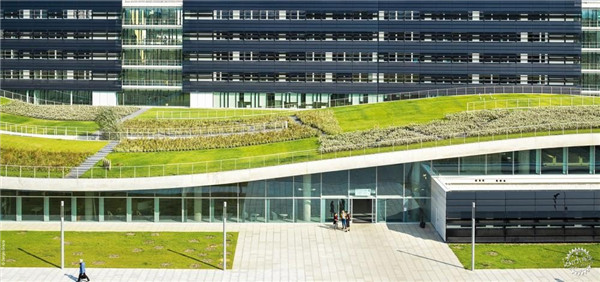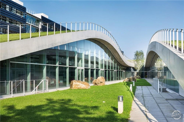 這個設(shè)計是由所謂的“景觀波浪”定義的,擁有一個種植面積廣闊的起伏的混凝土屋頂。建筑采用了常在橋梁建設(shè)中使用的拱形結(jié)構(gòu)技術(shù),并恰當?shù)卦O(shè)計了一個大的混凝土實驗室。這個可達的綠色屋頂不僅為校園提供了室外的休閑空間,同時也強化了周圍的結(jié)構(gòu),實現(xiàn)了方案的整體性。