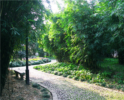 古猗園也是竹品種的聚集地,猗園景區石旁或路邊,庭前堂后、粉墻邊角,零星點綴叢竹三五群和小片竹圃外,在青清園內種植龜甲竹、方竹、紫竹,還有湘妃竹、鳳尾竹、小琴絲竹等,重點展示適宜上海地區生長的竹代表性品種,如此豐富多姿的竹類品種集中在一處,在上海五大古典園林中,古猗園位居之首。