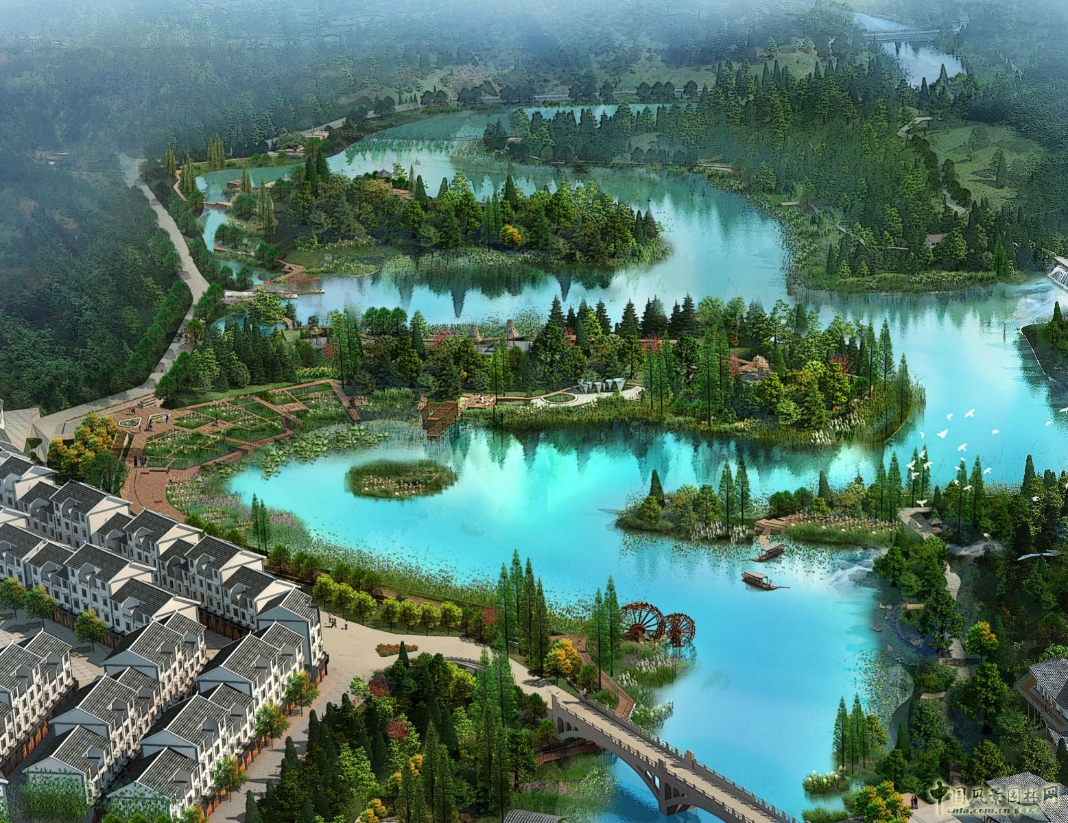 項目設計從災后場地現狀、水位及村民需求出發,結合新農村建設,凸顯“水域、山體、小鎮、島嶼、密林、濕地”等核心資源,打造集“文化展示、科普教育、生態保護與展示、水上觀光、休閑游覽”為一體的濕地生態公園,使“災區”變“景區”,攜手洋烈小鎮,共同打造新農村典范區、生態科普展示節點、宣漢的生態綠肺和休閑中心、宣漢文化的展示窗口及4A級旅游景區。