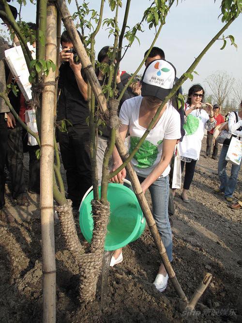 5月5日,世博會“綠色出行大使” 周迅與世博局領導、媒體朋友赴上海辰山植物園,一同種下了世博綠色出行林。同時,她還出資捐贈了233棵樹,成為世博林首個捐贈者。