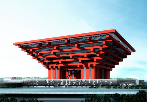 上海世博局有關負責人表示,最初設想的“中國紅”為一種選色。今年3月底,中國美院副院長宋繼明教授剖析了北京天安門城墻、故宮博物院的紅色,是通過其墻、柱、屋檐和國徽上許多不同深淺的紅色配置,才組成了外觀視覺上統一和諧的紅色。基于同樣的原理,中國館特殊的斗拱造型和核心筒,如果采用單一的紅色,那么在不同的光線光照及其折射下,在不同的視覺高度下,在白晝自然光和夜間燈光投射等條件下,所產生的外觀視覺效果是會產生差異的。