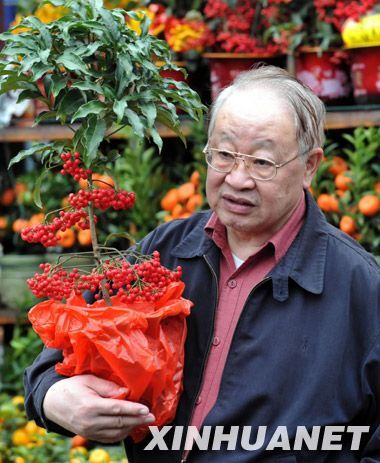 2月8日,一名市民在選購植物盆景。當日,香港維多利亞公園年宵市場啟動,各攤販推出鮮花、禮品、玩具等,吸引市民購買。新華社記者盧炳輝攝
