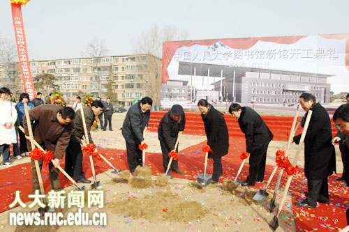 2月21日,中國人民大學圖書館新館開工典禮舉行,由此拉開校園東北區改造工程序幕。中國人民大學校長紀寶成、黨委書記程天權、常務副書記牛維麟、副校長林崗,國家發改委社會發展司副司長王鳳玲、教育部發展規劃司副司長張泰青出席開工典禮。開工典禮由牛維麟常務副書記主持。 紀寶成校長發表講話指出,圖書館于一所大學的重要性不言而喻,它不僅是師生閱讀的重要場地,也是大學人才培養的重要場所,更是教學科研的重要基地。學校現有的圖書館東館建于上世紀60年代,西館于上世紀90年代初竣工,這兩座圖書館見證著中國人民大學的發展史,承載著人民大學歷史的積淀,對學校的發展起到至關重要的作用。但現有兩座圖書館已無法與時俱進地滿足人才培養的需要,在向世界一流大學邁進的時刻,一座現代化、高質量的圖書館顯得尤為重要。 紀寶成校長說,圖書館新館的建設項目于2007年1月獲得批準,在各級領導的高度關懷下,在國家發改委、教育部等諸多部委的大力支持下,終于順利開工。圖書館新館的開工,標志著校園東北區改造工程正式拉開序幕。在不久的將來,人民大學東北區將展現出嶄新的面貌。而圖書館新館的建設,將為學校學科建設、教學科研、社會服務、國際交流打造新的平臺,是人民大學改善辦學條件、提升綜合實力、向世界一流大學邁進的又一項重要工程。 紀寶成校長希望圖書館新館建設進展順利,設計、施工、監理單位緊密配合、共同努力,將中國人民大學圖書館新館打造成一個精品工程、地標工程。 國家發改委社會發展司副司長王鳳玲、教育部發展規劃司副司長張泰青分別代表國家發改委社會發展司和教育部發展規劃司對中國人民大學圖書館新館開工表示祝賀,并預祝圖書館新館項目進展順利。