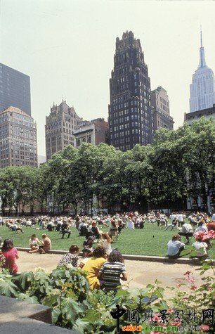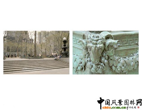 這個設計包括了數不清的小變化但是卻會造成顯著的結果。景觀設計師改造并且新增了入口,坡道,座椅以及人行道,并且從圍墻中穿過以及配置了自由流暢的欄桿。設計中還包括了商業零售店,公共休息室和娛樂休閑項目作為成功改造的關鍵因素。在設計過程中,1934年方案中的鋪路石被重新利用,礫石道路是從公園中心開始發展的。 中心地帶的廢棄樹籬被認為是一個嚴重的維護和安全問題,所以被移除了。草坪區域被擴大了,300*300英尺大的區域長滿了多年生草本植物,常綠樹栽植在正對著圍墻和欄桿的地方,在這個位置它們可以被通暢無阻的欣賞。 ![]() ![]() 景觀設計師的研究發現紐約公共圖書館的建筑設計師的兩個鑄鐵燈設計構想以及與之搭配的臺階。與新澤西的一家鑄造廠合作,為新開放的進入公園的入口新增了鑄鐵裝飾火炬,并且重新設計了后方的臺階創造了一個主要的通行區域。 Charles Adam Platt設計的古老的噴泉被最新的工程儀器完全重造。周圍的街道被Olmsted Bishop的彎曲路燈重新點亮。在墻上的鐵鑄的圍欄也被重新調整和改造。改造后環境的可持續性發展在景觀設計師使用耐用和生態的材料得到保障。 許多的游人并不會注意到這個地方是一個大范圍的綠色屋頂-環境可持續性發展的地標。在設計改造過程中,紐約公共圖書館聲稱需要增加書架。景觀設計師,一個從1970年代以來景觀結構設計的創新者,建議將書架放到公園下面。這個兩層樓搞的延伸書架通過62英尺長的通道和超過3,000,000體積的房間與圖書館相連。煙氣凈化通風口都是隱藏在花叢邊界。 布萊恩特公園的社會環境轉變發生在1992年四月改造完成后的一些天里。在1992年發表的一篇文章里,紐約時報引用了這樣一句話,"這個公園曾經是被遺棄的人群,毒販和吸毒者的'家園',現在它被從緊鄰的紐約公共圖書館來的白領、商戶、投資者和閱讀的人群所熱愛。" ![]() ![]()