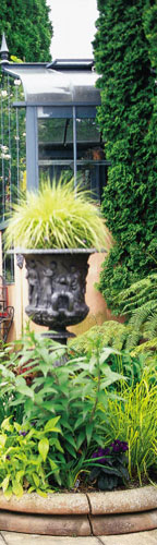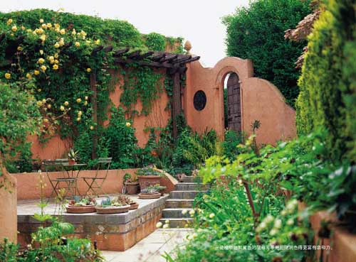 粗獷風格 除了粗獷,大膽之外,沒有再合適的詞匯能描繪這個漂亮的托斯卡那庭院了。從庭院規劃、到地面和墻壁的材質選擇,再到到戶外家具和綠埴的搭配,一切看起來都十分融洽和諧,大量的硬質鋪裝,紅褐色的灰泥墻讓這個庭院充滿熱帶魅力,洋溢著休閑的意大利式情晴。 對比手段 對比,為簡單的庭院注入無限活力。紅色的灰泥墻壁和大片的綠色植物相映生輝,從色彩上帶來驚艷效果;硬質的鋪裝的質感與花草植物在材質上形成一硬一軟的對比,豐富了庭院效果。地面、臺階的直線條與SPA噴泉池和墻面、門口的弧線相互應襯,化解了硬冷的感覺。 空間規劃 美麗的花園,要有任人休閑、娛樂的空間才是完美的設計。這個庭院設置有供2人享用的SPA噴泉池、旁邊是裝飾有精致馬賽克飾面的咖啡桌、高出地面的觀景休閑區,讓人在庭院中可以會客、賞景、享受咖啡、或是享受SPA按摩,成為室內空間的有效延伸。 節能環保 托斯卡那風格的庭院不僅能帶給人度假一般的悠閑心情,由于地面為硬質鋪裝,又采用大量耐旱植物,因此,基本無需特別打理,免去了平日維護的時間和費用,節約用水,十分環保。 TIP專家解讀 了解托斯卡那風格 托斯卡納風格的意大利式庭院多表現為鄉村風情主體,這種風格多數體現在建筑外觀上,通過天然材料,如石頭、木頭和灰泥來表現建筑的肌理。尤其是紅色陶土屋瓦及灰泥墻面涂層,都是非常具有意式鄉村風格的元素。 如何規劃布局 意式鄉村風格的規劃布局主要要把握兩個部分,第一建筑的布局,建筑多為連續半圍合的格局,適當的小中庭花園和露臺的設計尤為重要;第二就是開闊的周邊密林種植區,做出遠距離的環抱,為庭院提供遠景組成。如果由于庭院尺寸限制無法做出環抱的遠景,那么就在隔墻上做足爬藤植物,或運用檜柏和高籬,一樣可以達到不錯的景觀效果。 把握硬質景觀特點 以自然質感的磚石為主,但鋪裝材料多切割成規則的形狀,適當地使用彩色瓷磚。墻面用灰泥或者涂刷鮮艷的顏色,注意需選用戶外涂料。木質結構的廊架等,色彩上兼顧到周邊的建筑和整體庭院風格,但是不建議用原色。 巧用裝飾元素 較多使用的裝飾物有:鐵藝桌椅、赤陶花器、石雕花器和獸頭水口,陶質的花器的使用量可以加大,除了赤陶本色,還可以使用赤陶刷涂白色和彩色的盆器,多使用盆器一方面能靈活增加種植組合,另外對北方庭院來說方便在冬季將植物搬入暖房過冬。 如何搭配植物 植物以自然式種植為主,周邊除了密林外,大量的常綠植物如檜柏也是常用的。灌木的利用可以不以花灌木為主,枝葉濃密、造型自然的品種較為適合。宿根花卉和地被植物的使用可以隨心所欲。要注意添加觀賞草的種植,在歐式自然風的庭院內種植觀賞草是很有景觀效果的。如:狼尾草、玉帶草、絲蘭、鼠尾草、熏衣草、萱草等都可以使用。植物自然生長,不加修剪,體現自然植物的錯落感。 戶外家具搭配 搭配這樣的空間,選擇鐵藝加軟墊的椅子座椅、馬賽克拼花桌面的茶幾或咖啡桌最有韻味,直接用磚石砌筑后刷涂料的沙發椅也是很有特點的選擇。